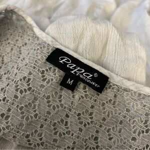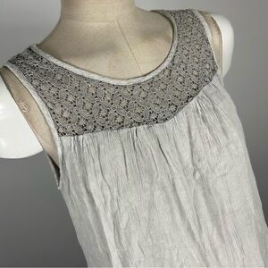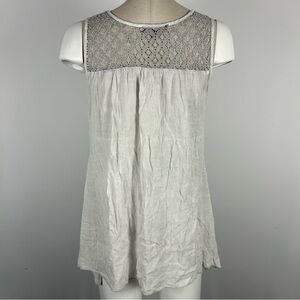 Elegant sleeveless top with white body and gray lace accents. Perfect for casual wear. In good used condition