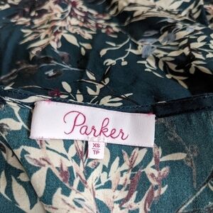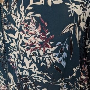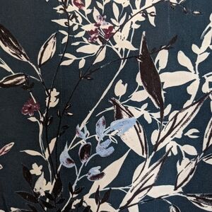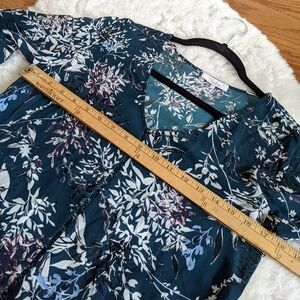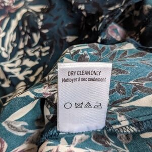 excellent used condition 100% silk floral botanical leaf print bell flared sleeves v neck