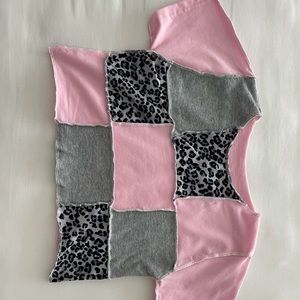 leopard print, light grey, and baby pink, how much cuter can’t a top get!! so trendy and adorable, and handmade so completely cruelty free and recycled materials!!! incredible condition