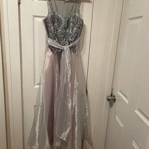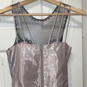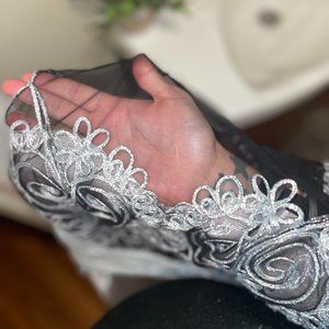 size 6 USA Made, metallic shine, sparkly grey lace decal, flowy, pink tinge