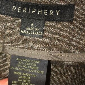 periphery Wool Blend Brown Dress Pants w Button Accent Sz 6 Inseam 28”