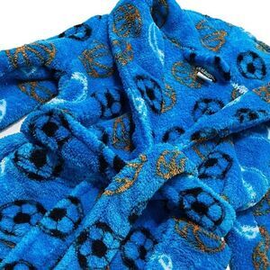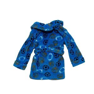 This little housecoat is SUPER soft and fluffy and warm. Bright blue with soccer and football ball print, two front pockets, and an attached belt so you don't have to spend hours trying to locate it. Get this in your bundle with some pj's, slippers and a cute outfit or two for an amazing closet discount! EUC.