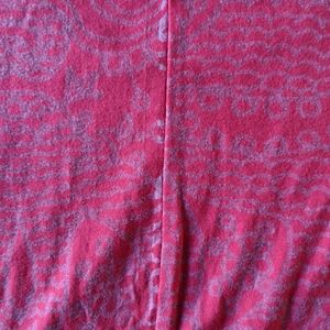 Shiny pink women print on top is peeling (see photo), some fading at center back seam (see photo).