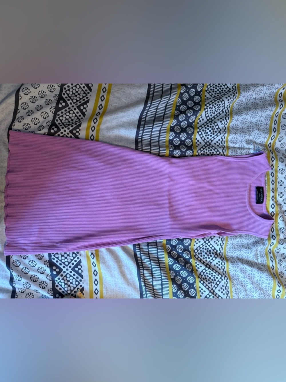 Stretchy ribbed fabric. Figure-hugging silhouette. Vibrant pink color.