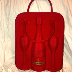 Piper-Heidsieck Champagne Red Bottle Carry Case Travel Picnic 2 Original Glasses