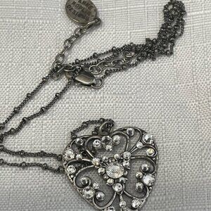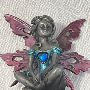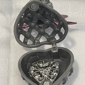 limited edition enamelled metal pixie elf trinket box when opened contains a heart shaped rhine stone pendant from Anne Koplik collection on silver coloured metal with chain, a sweet gift for your little girl or other loved one on Valentine's day.