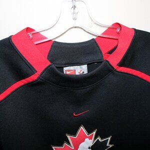 100% official licensed TEAM CANADA sweater / training top, I think this is player issue because there are no other examples online. Very warm performance gear, I can tell. Embroidered big logo on front. Manufactured by NIKE in size Men's MEDIUM as it says on the size tag. I personally measured 22½" from armpit to armpit across the chest at the widest part and 29½" from top of shoulder to front hem. Made in China original. No time for Far East fakes or modern reproduction bollocks. This is the real deal.