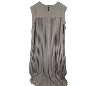 This elegant gray-taupe pleated dress is designed to flatter with its flowing silhouette and timeless style. The soft pleats create graceful movement, while the neutral hue makes it a versatile piece that can be dressed up or down. Perfect for special occasions, work, or an evening out, this dress combines comfort with sophistication.