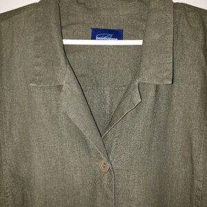 Plus size tunic linen blend botton front. Kaki color. Pockets safari look.