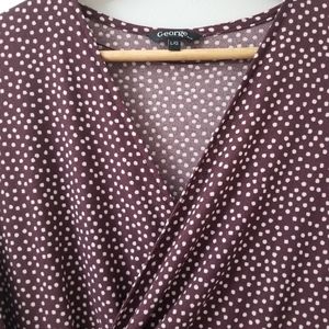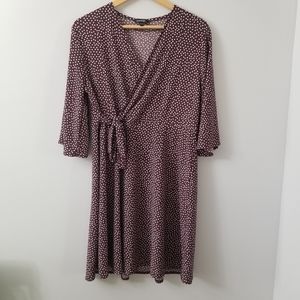 polka Dot Illusion Faux Wrap Loose Dress Lg 3/4 Sleeve