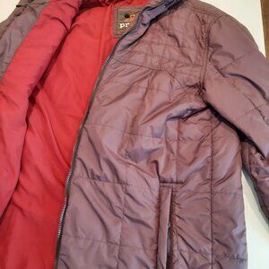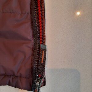 Fantastic jacket from prAna. Mahogany colour with a deep red lining. There's some really nice variegated grid quilting throughout the jacket. Zippers a robust and work great. The jacket is in great condition, small noted mark on the inside lining near the bottom (see picture), also noted water mark on bottom of cuff near velcro adjustment (see picture).