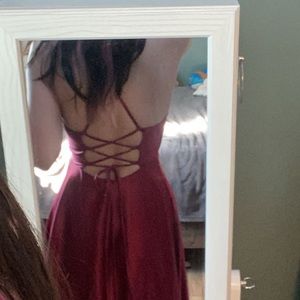 i wore this dress once for my highschool prom. i can’t remember 100%, but i believe it’s a size 6! i am 5’9, and 135 pounds. it has great support. we added a tiny stitch close to the top of the slit so that i wouldn’t flash anyone while i was dancing hehe:) paid about 300 for it originally. willing to talk about the price with anyone interested.
