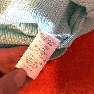 Aqua blue coord set with short sleeve ribbed cardigan and matching rib knit crop top new with tags. This duo includes a fitted rib knit crop top and a matching short-sleeve buttoned cardigan in a fresh, icy aqua blue. The soft ribbed texture gives both pieces a flattering, body-hugging silhouette, and the colour is even prettier in person, clean, bright, and perfect for spring, summer, or layering year-round. The cardigan features a round neckline and tonal buttons, while the matching top creates the perfect seamless look underneath. Wear them together for a chic monochrome moment or mix-and-match with your favourite denim, skirts, or trousers. Fabric is a comfortable and high-quality blend of 60% cotton, 20% viscose, 20% nylon, soft, stretchy, and breathable. Colour is accurate in the stock photos, mine are taken in artificial light. Both are marked size L Large, please see pictures for measurements (it’s very stretchy). This item comes from a smoke free, pets friendly home. Recycled bags/box used when possible. Please, let me know if you'd like any additional info. Thanks for watching!