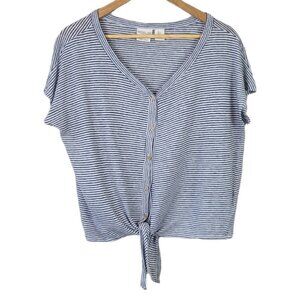 rachel Zoe Linen Stripe Tie Front Short Sleeve Top L