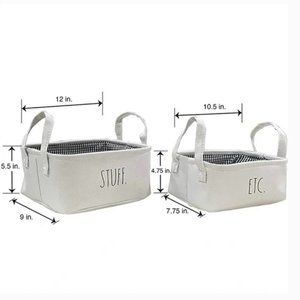i have 4 rae dunn cream/off white storage organization fabric baskets in the same set with various sayings and sizes so if you want to purchase a set for organizing let me know i can make you a great bundle deal!