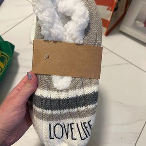 rae dunn love life white grey striped slipper socks size small medium 5-7 brand new with tags