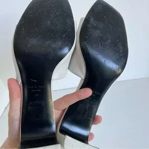 Elegant cream mules with a sleek design. Features a comfortable block heel. Perfect for any occasion. Barely worn, fits tss.