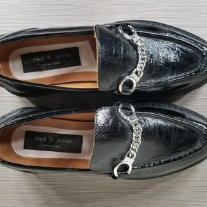 rag & bone 'Curtis' Loafer Black Patent Textured Leather, Womens Size 7 US / 37