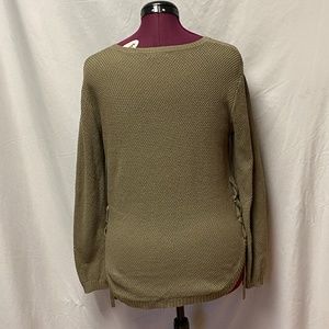 - Crew neckline - Full length sleeves - Criss cross side ties - 55% acrylic, 45% cotton - Sage green