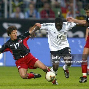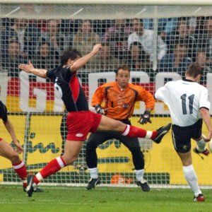 As worn by players such as René Aufhauser, Roman Mählich, Richard Kitzbichler, Roman Wallner, Ferdinand Feldhofer, Michael Baur, Rolf Landerl, Ernst Dospel, Markus Weissenberger, Harald Cerny and Paul Scharner in a friendly against Germany on 17 May 2002. This black away design was originally issued for the EURO 2004 qualification matches but ultimately unused because no colour clashing occurred, I believe. Either that, or they just didn't want to wear it anymore because they were steamrolled by Germany 6-2 in that one match!