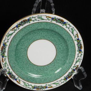 - Raised Floral Art Border, Marble Green Center, Gold Rim