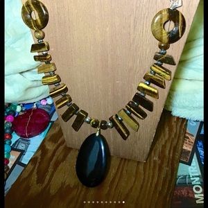 This absolutely stunning pure raw tigers eye crystal onyx statement necklace is just so exquisite and beautiful one of my proudest creations