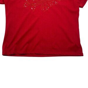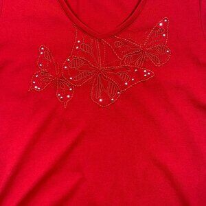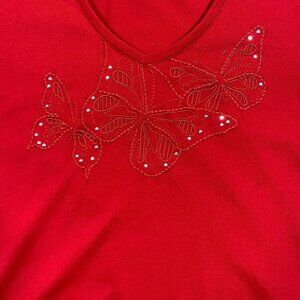 red v neck short sleeve t-shirt butterflies sz med CAROLL REED
