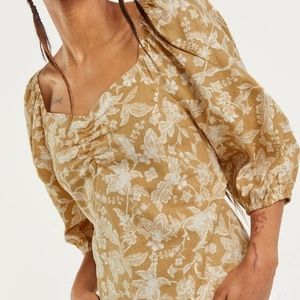 Reitmans Printed Sweetheart Neck Linen Top Size XL, Light Mustard