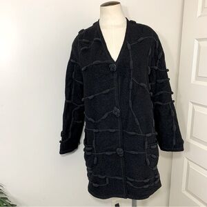 renée Legault Artisanal Designer Unique Wool Blend Black Cardigan Jacket Small