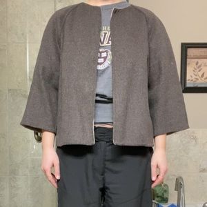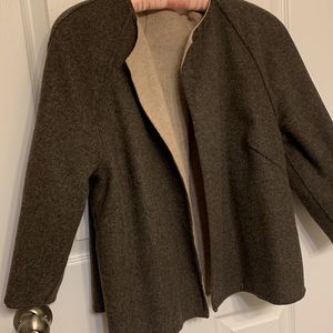brown on one side and beige on yhr other, versatile swing jacket, wool, 3/4 sleeves no closures