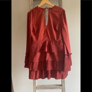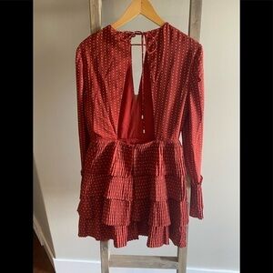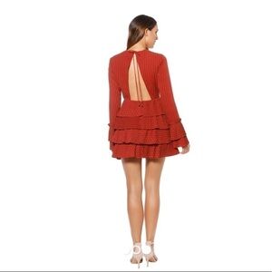Red is without a doubt, the colour of the season! From the runway, to your wardrobe, the Fundament mini dress by C/MEO is a fun and feminine piece to hire this Summer! Featuring a striking open back and tiered mini skirt, this cute little polka dot number is perfect to rent for an upcoming daytime event or night out with friends!