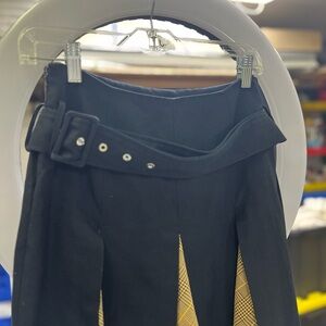 Modern & architectural, this navy scarf insert skirt by Rokh features dynamic pleats & a chic two-tone panel design with a decorative belt. The asymmetrical hemline adds sophisticated movement, making it perfect for elevated styling.