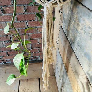 rope tied macrame plant hanger , this one doesn’t include the plant or pot. Rope tied macrame hangers are beautiful and vines love to hang in them !