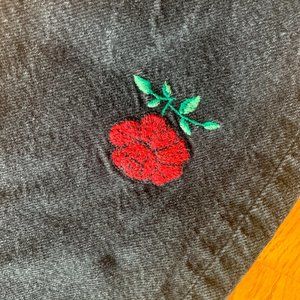 rose embroidered black mom jeans