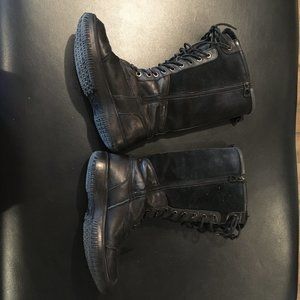 pair of women's winter boots designed in a mix of leather and semi-gloss material, trimmed with leather. The iconic RUDSAK logo adorns the outer sides adding a stylish finish. Fleece lined for warmth and comfort