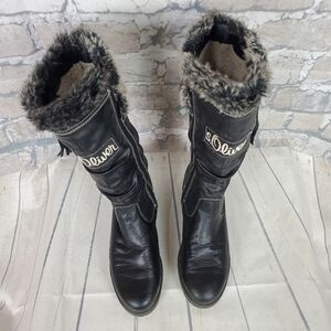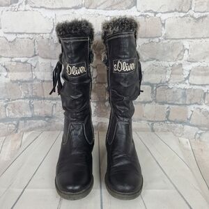 s.Oliver Winter Tall Leather Boots Lined Faux Fur Black Size 38