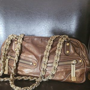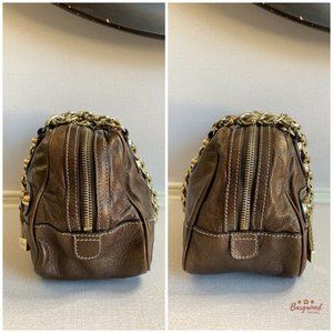 Authentic Gucci Metallic Brown Calf Leather Capri Chain Zip Shoulder Bag 152462
