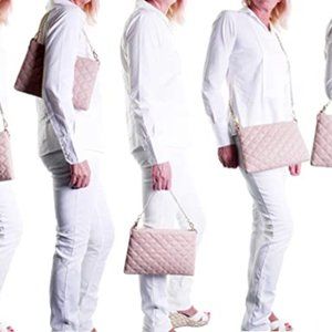 Option de deux sangles accessibles, une chaîne en métal plus courte et plus longue avec cuir coordonné.