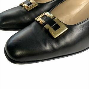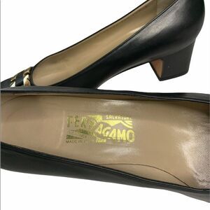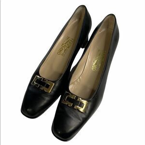 salvatore Ferragamo Goldtone Hardware Leather Shoes Block Heels