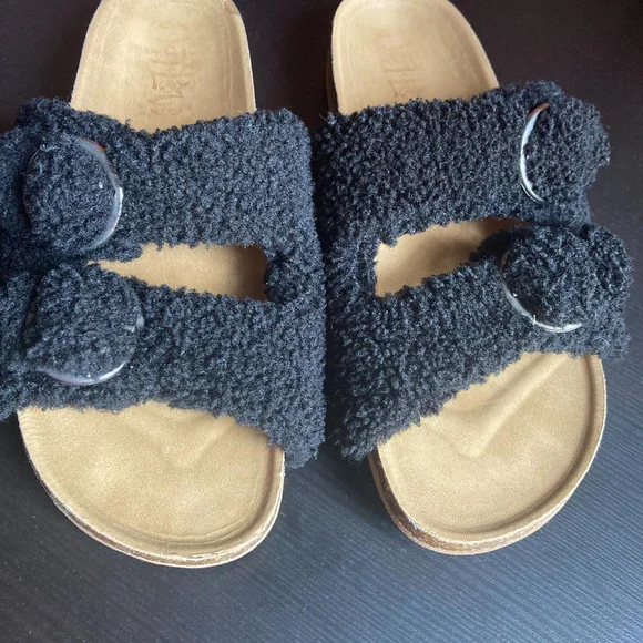 Joanna Sherpa Lined Footbed Sandals Black - Mad Love size 8.5/9