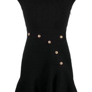 sleeveless mini dress from SANDRO featuring jet black, organic cotton blend, round neck, decorative button detailing, sleeveless and flared hem. Conscious: This item is made from at least 50% organic materials.