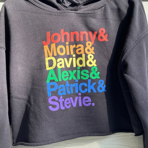 feel a little bit Alexis in this official Schitt's Creek cropped hoodie in black with Pride colours. great used condition, size small