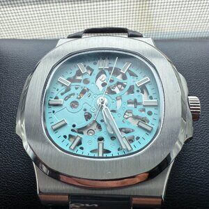 seiko mod tiffany blue skeleton nautilus automatic watch