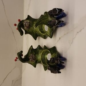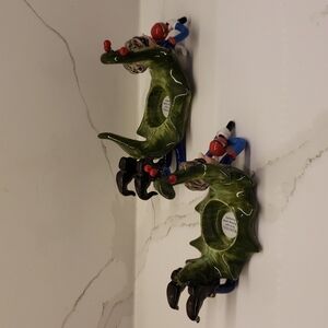 #727 Set of 2 Vanmark 2003 Tea Light Holders Singing Elves 3.5"h x 7" / 3.5"h x 8"l