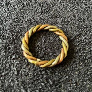 4 unique shaped napkin rings, star, circle with 2 colours, oval and curly cue, never used and cleaned recently, brass, made in India. Never used