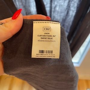 'Light-filtering linen drapery is woven from natural flax grown in Europe. Full-length in smoky blue. Hangs beautifully with back tabs, rod pocket or drapery hooks. CB2 exclusive.