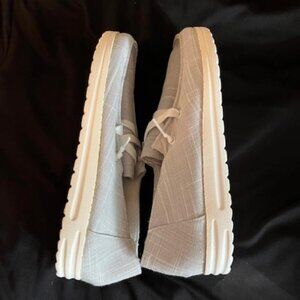 Never worn grey/white leisure show, lace up, plastic bottom,