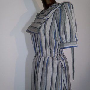 Cute dress with front pinafore, ala "Lady Diana". Crew neck, short sleeves. Polyester boucle material. Another one of my aunt's from late 1970s-early 1980s. It is also made in Canada. These were "dresses bought from major department stores back when Canada had a domestic garment manufacturing industry.