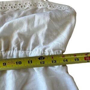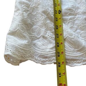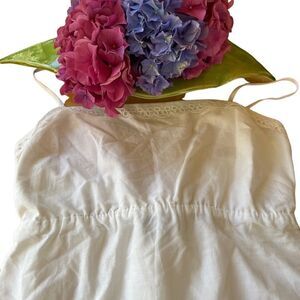 In excellent pre-owned condition, 100% Cotton Dress. Adjustable straps, open back with tie, lined, lovely lace pattern, size large. See measurements.