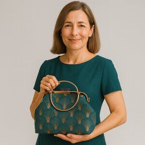 Vintage Brass: Hand-sewn with care, featuring a classic metal clasp for secure closure.